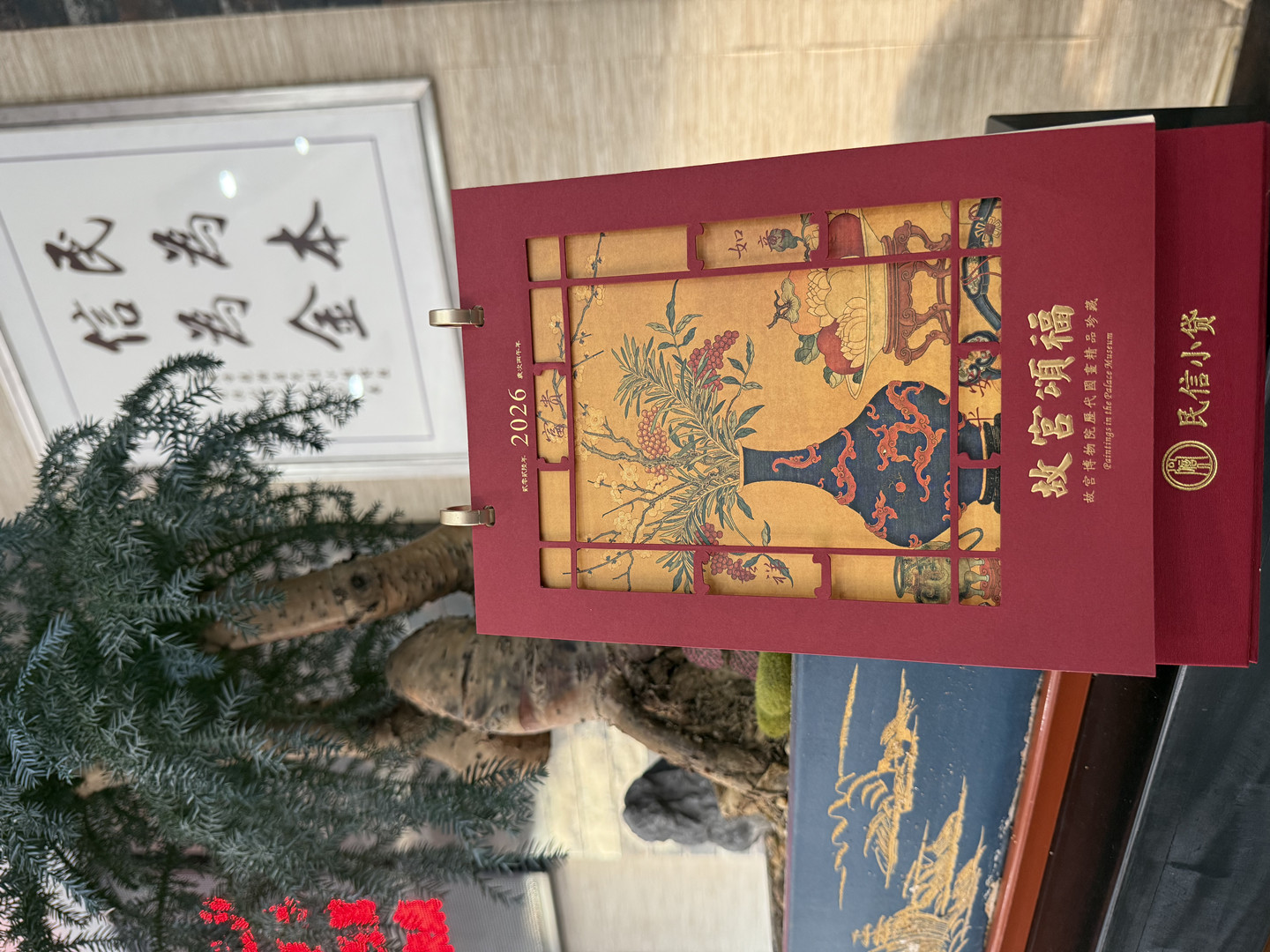 台历封面印着“故宫颂福 故宫博物院藏历代宫廷书画珍品”,内页图案复刻自故宫馆藏经典——明黄色底色上,青蓝花瓶斜插繁花,旁侧鲜果盈盘,器物静美,连留白处都流淌着古画的诗意。这不是简单的装饰,更是我们想与您分享的文化温度:正如故宫珍品历经岁月仍熠熠生辉,民信小贷也愿与您共守长情,让信任沉淀出更醇厚的故事。