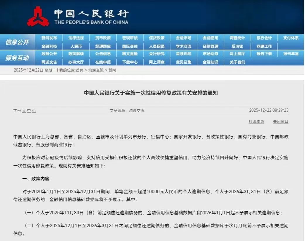 政策实行“免申即享”,无需跑网点、填材料,征信系统会自动识别符合条件的逾期信息并统一处理。更无需支付任何费用,警惕第三方“代理修复”诈骗,遇此类情况可立即报案。